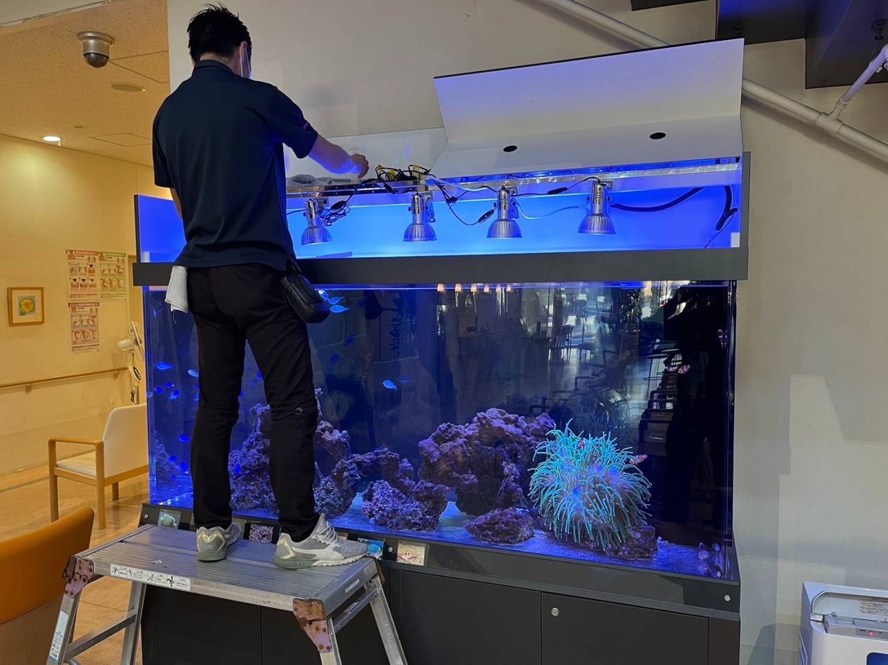 水槽メンテナンス 2023/03/01 水槽クリーニング ジャパンハンドコートマリンズ 水槽に高さがあるものは脚立や、専用の道具を使ったり工夫をしてメンテナンスをしています。 丁寧に ジャパンハンドコートマリンズ 水槽に傷がついたりしないよう慎重に綺麗にしていきます。 お客様の喜ぶ顔が見たくて… ジャパンハンドコートマリンズ お客さんに綺麗だと思ってもらえるように、喜んでもらえるように、毎日頑張っています! お役立ち情報