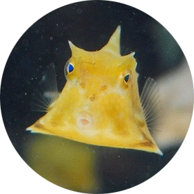 さわととラクダハコフグは背中にコブのような突起があることから 「ラクダハコフグ」という名前がついたんだって!正面から見ると三角形に見える体が特徴的! おちょぼ口で餌をつつく姿がかわいい魚だよ…